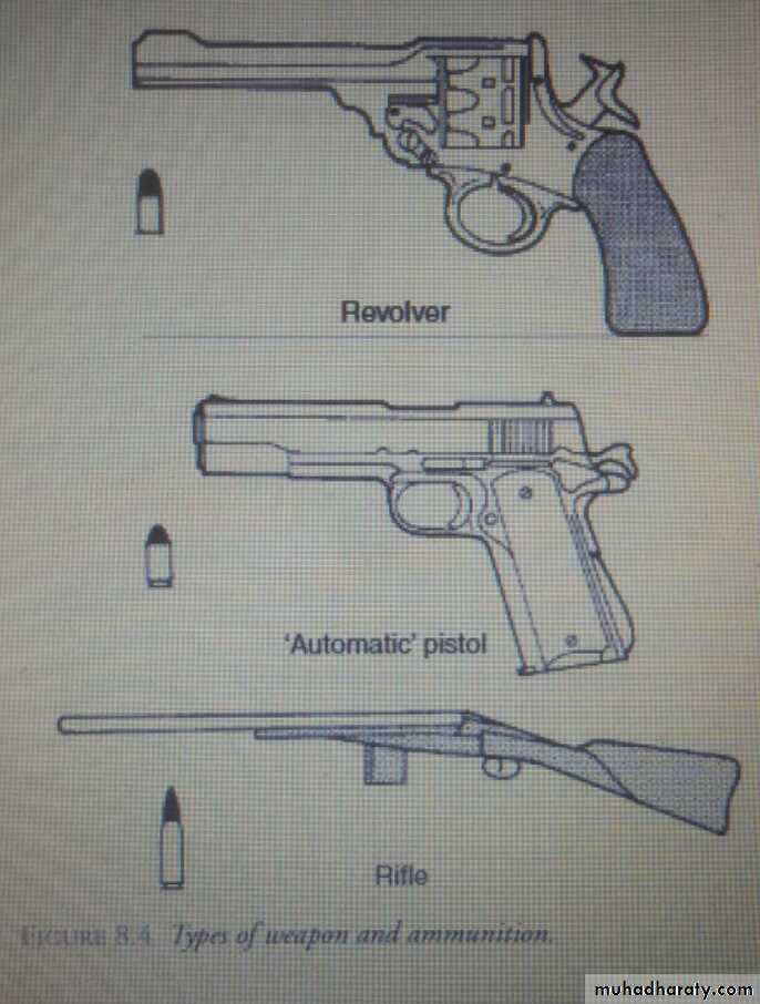 تعرف جروح الاسلحة النارية على أنها أضرار نسيجية محدثة بمقذوفات معدنية , و في أحيان نادرة غير معدنية, و هذه المقذوفات مطلقة من أجهزة, معده خصيصا لإطلاقها, تعرف بالأسلحة النارية .السلاح الناري هو جهازمعد لاطلاق المقذوفات النارية و يتكون من ثلاثة أقسام رئيسية هي: ألسبطانة , جهاز الإطلاق , والعتاد.