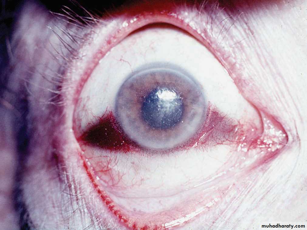 Post-mortem change in the eye, the so-called ‘tache noire’. These are brown areas of scleral drying caused by failure of the lids to close after death.
