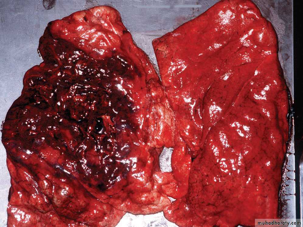 Extensive destruction and haemorrhage of thelung by the rifle shot shown above