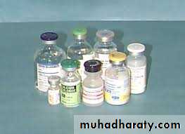 B. Parenteral Routes 1-Intravenous injections:Intravenous injections might be applied to the cubital, basilic and cephalic veins.Advantages: Immediate action takes place , This route is preferred in emergency situations, This route is preferred for unconscious patients., Titration of dose is possible., Large volume of fluids might be injected by this route, Diluted irritant might be injected. , Absorption is not required.,No first pass effect takes place., Blood plasma or fluids might be injected.Disadvantages:There is no retreat. , This method is more risky. , suitable for insoluble, Sepsis-Infection might occur. , Phlebitis(Inflammation of the blood vessel) might occur., Infiltration of surrounding tissues might result., This method is not suitable for oily preparations. ,This method is not eparations2-Intramuscular injection: Drugs may be injected into the arm (deltoid), thigh (vastus lateralis) or buttocks (gluteus maximus). The volume used is 3 ml.Advantages:Absorption is rapid than subcutaneous route., Oily preparations can be used. ,Slow releasing drugs can be given by this route.DisadvantagesSome time painful, Not suitable for irritant drugs., Using this route might cause nerve or vein damage.3. Subcutaneous injection: Some drugs, notably insulin, are routinely administered SC. Drug absorption is generally slower SC than IM, due to poorer vascularity. Absorption can be facilitated by heat, massage or vasodilators. It can be slowed by co-administration of vasoconstrictors, a practice commonly used to prolong the local action of local anesthetics. As above, arm > thigh.4- Intraperitoneal injection: is the injection of a substance into the peritoneum (body cavity). In general , it is rarely used in human (fearing from peritonitis), it is preferred when large amounts of replacement fluids are needed, or when low blood pressure or other problems prevent the use of a suitable blood vessel for intravenous injection5- Intradermal injection: is injection of drug in the dermis, it is one of the routes used for administration vaccins and for the test of allergy.