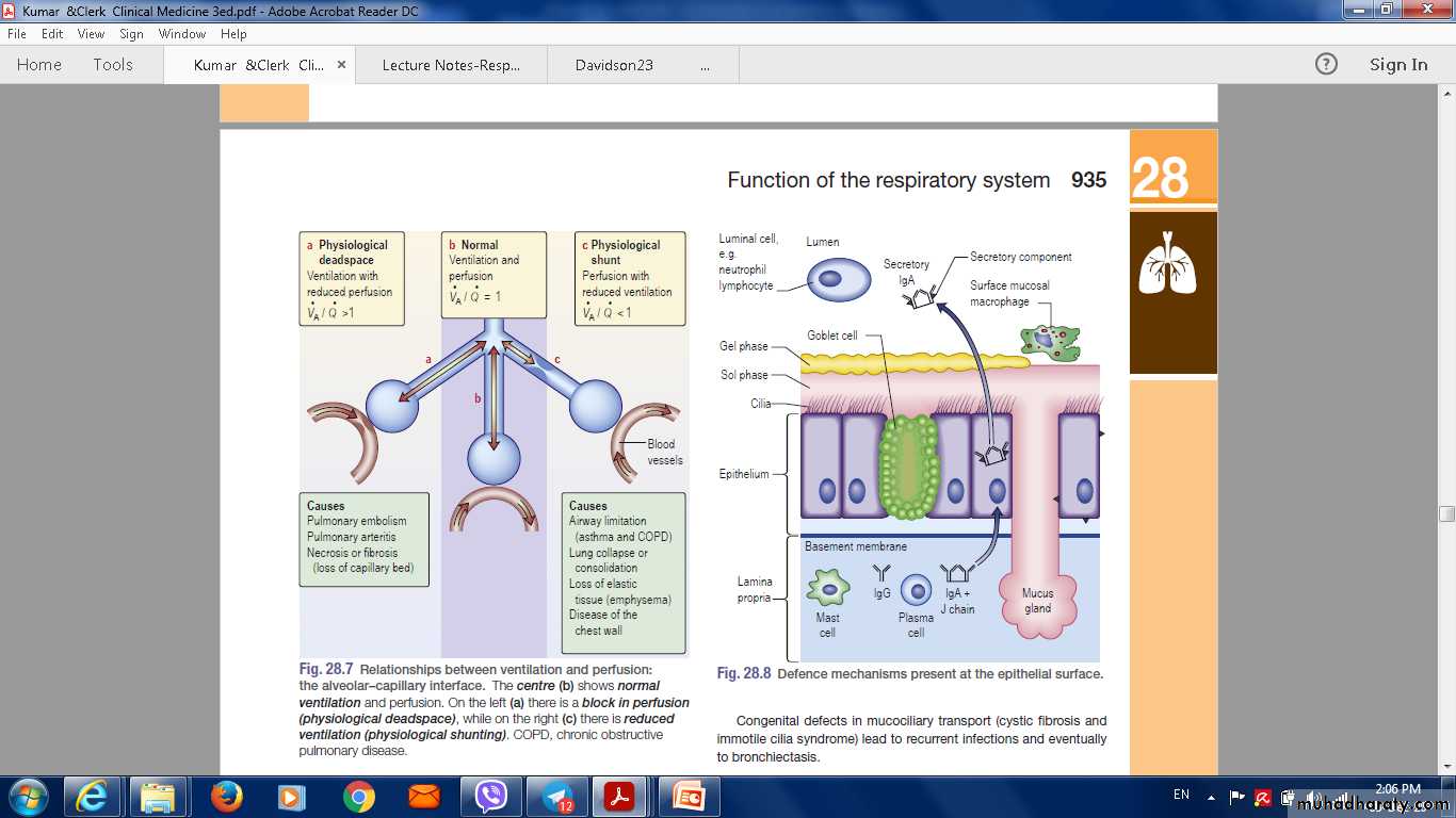 from the nose to the alveoli connect the external environment with the extensive, thin and vulnerable alveolar surface.In the glottis and trachea, obstruction by foreign bodies and tumours.
