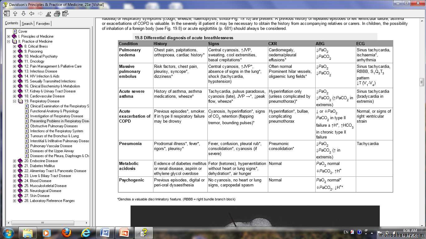 Differential diagnosis of acute breathlessnss