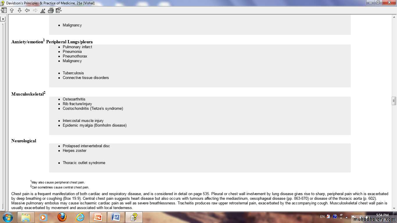 Chest pain :differential diagnosis