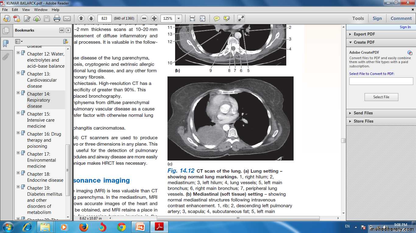 CT provides detailed images of the pulmonary parenchyma, mediastinum, pleura and bony structures .High-resolution CT (HRCT)