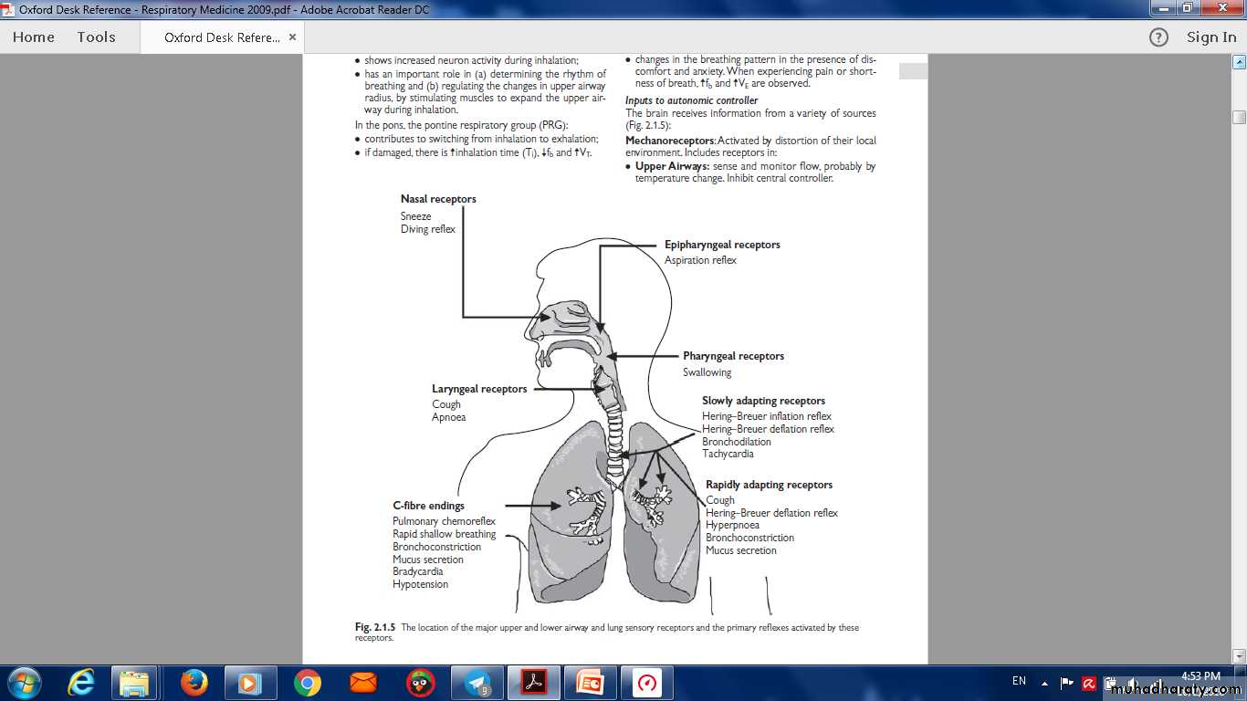 Location of major upper and lower airway receptors