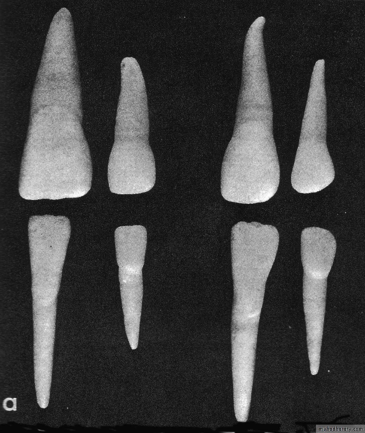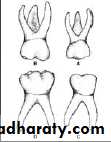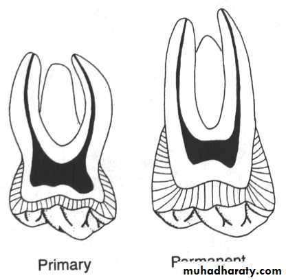 are more flared as they approach the apex in order to accommodate the developing permanent tooth buds