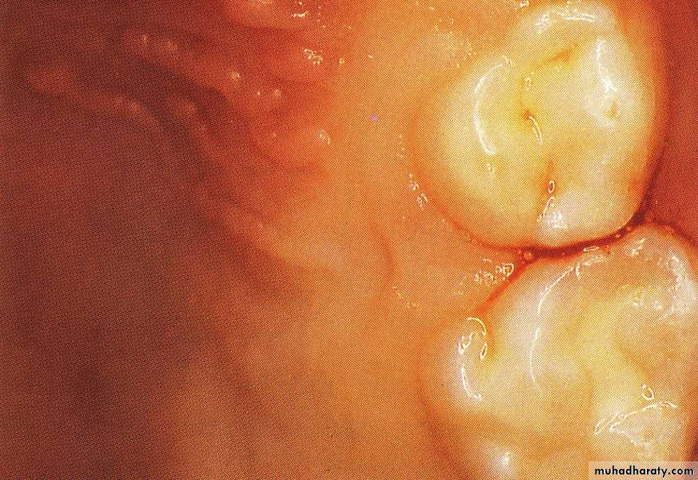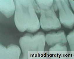 Flared roots of the molars use caution as premolar buds are located between the roots