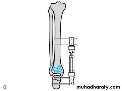Screws (Schanz) pass above & below the # and are connected to an external frame