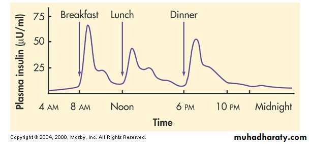 Normal insulin metabolismThe insulin is Produced by the cells in the islets of Langherans of the pancreas