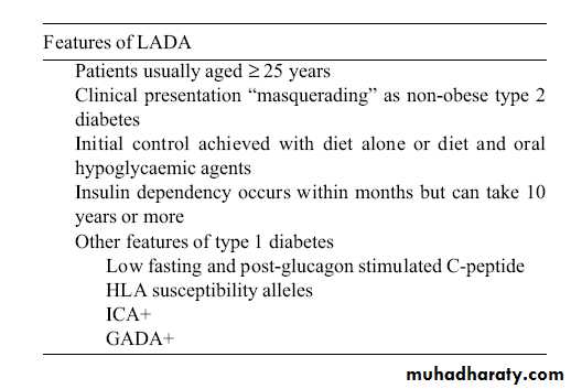• Latent Autoimmune Diabetes in Adults (LADA) is a form of autoimmune ( like type 1 diabetes) which is diagnosed in individuals who are older than the usual age of onset of type 1 diabetes.