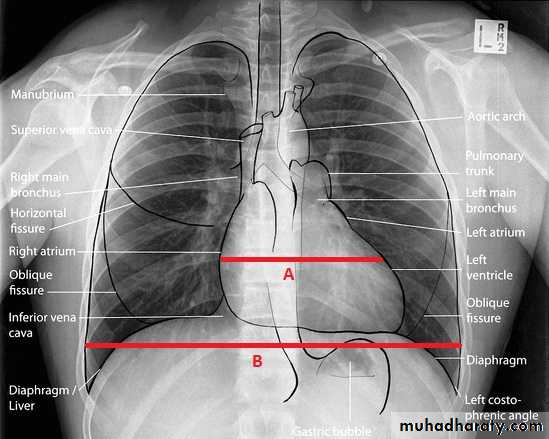 Chest X-ray: Postero-anterior view (PA view):Size of the heart