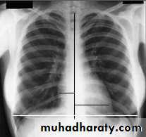 Cardiac size:Cardio-thoracic ratio (CTR):