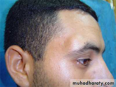1-may cause bony depression and penetrate to the dura , meningeal penetration is a problem with midline dermoid not occur in internal or external angular dermoid. so need C.T SCAN before operation.Treatments by surgical excision if causing a troublesome.