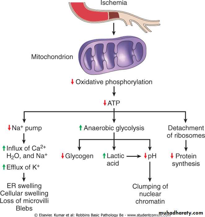 • Mitochondrial dysfunction :- manifested as lack of oxidative phosphorylation leading to ATP depletion