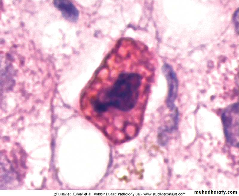 Cellular cholesterol metabolism is tightly regulated to ensure normal cell membrane synthesis without significant intracellular accumulation. However, phagocytic cell may become overloaded with lipid ( triglycerides, cholesterol and cholesteryl esters) in several different pathologic processesMacrophage in contact with lipid debris of necrotic cells or abnormal (e.g. oxidized) form of lipoproteins may become stuffed with phagocytosed lipid. These macrophages may be filled with minutes, membrane bound vacuoles of lipid, imparting a foamy appearance to their cytoplasm (foam cells).