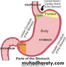 3 parts fundus ,body and pyloric partsorfices of the stomach;