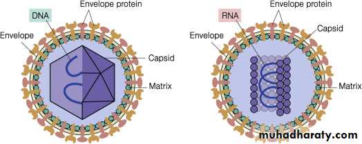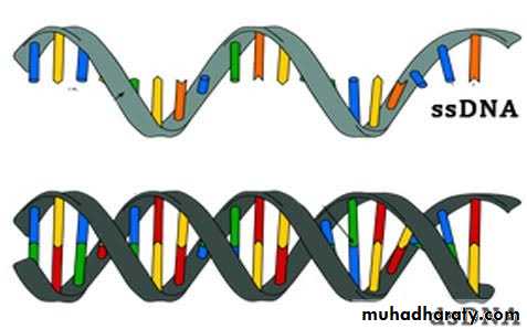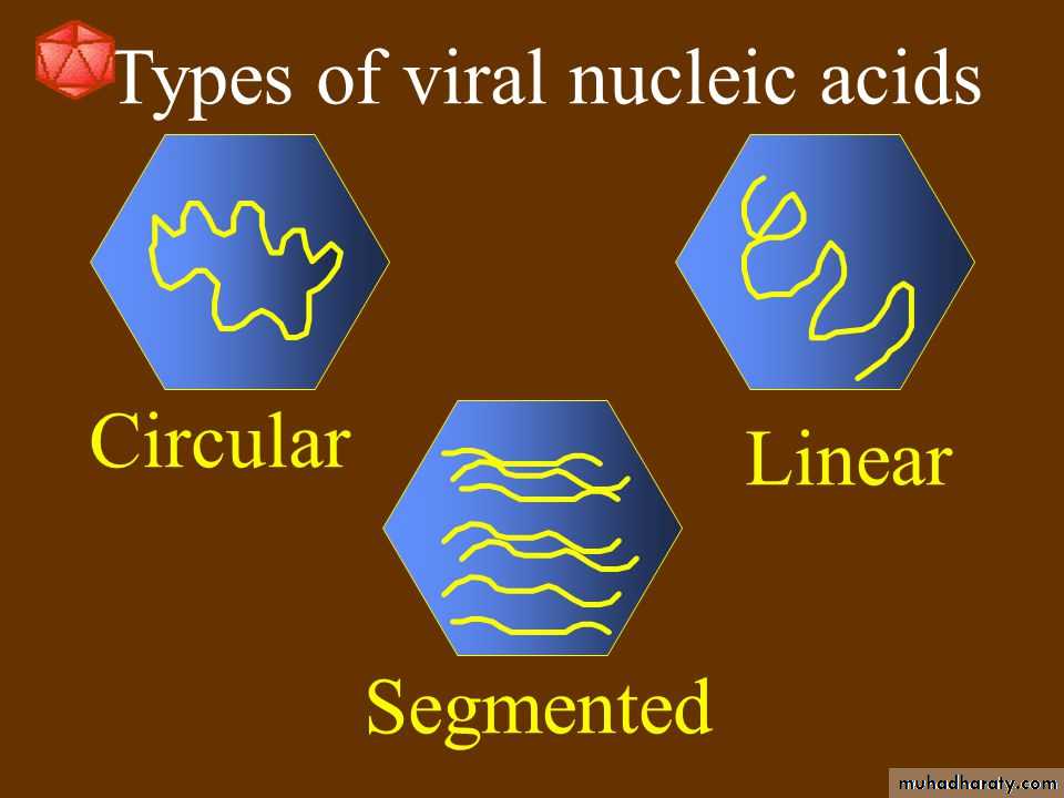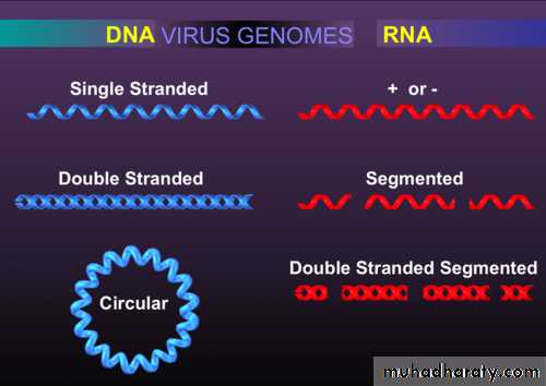 Viruses contain a single kind of nucleic acid either DNA or RNA single or double-stranded, circular or linear that encodes the genetic information necessary for replication of the virus.The size of the viral DNA genome ranges from 3.2 kbp (hepadnaviruses) to 375 kbp (poxviruses).