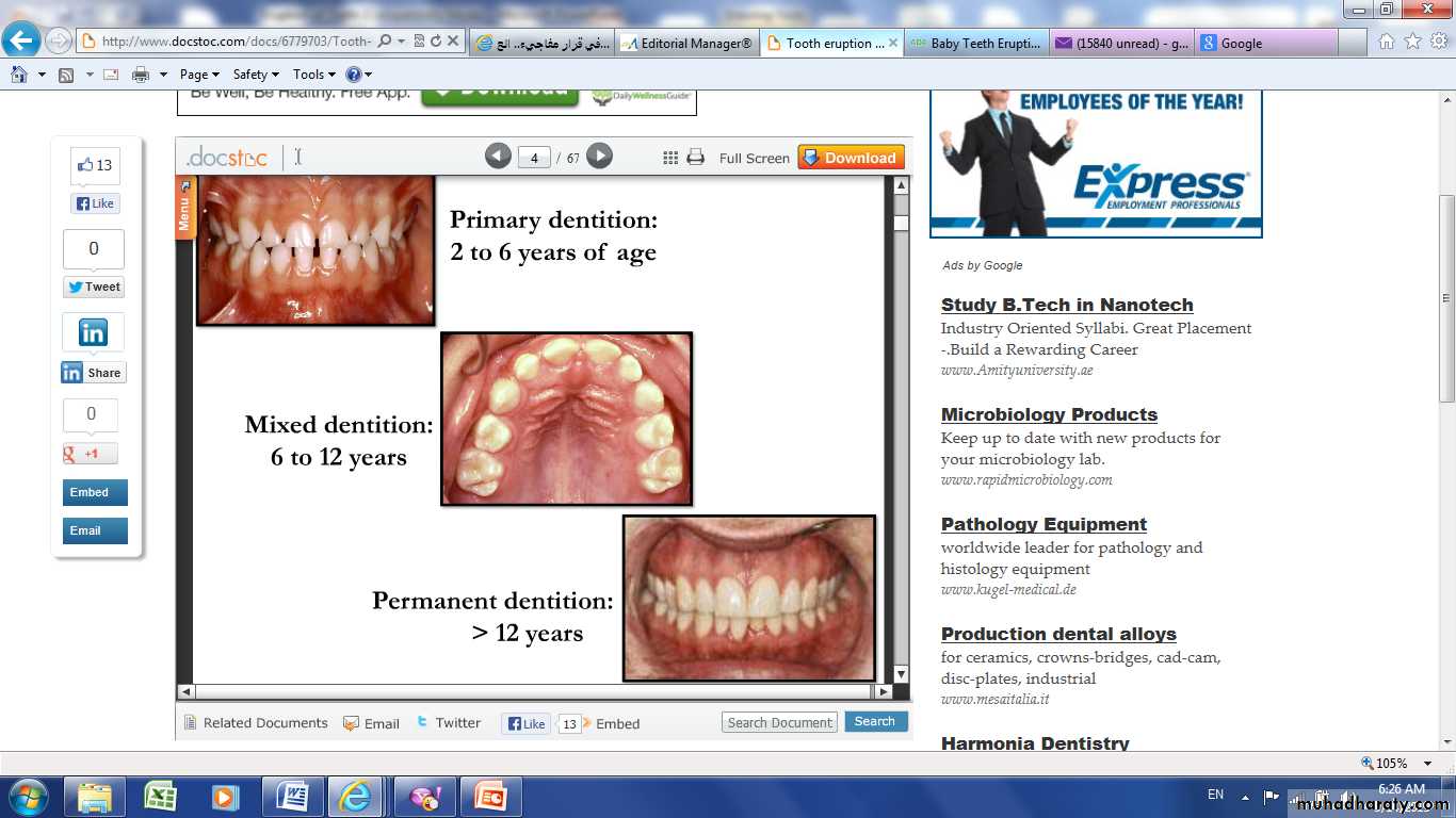 Eruption of Teeth..