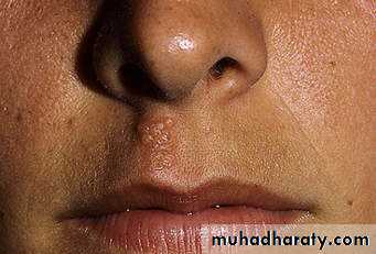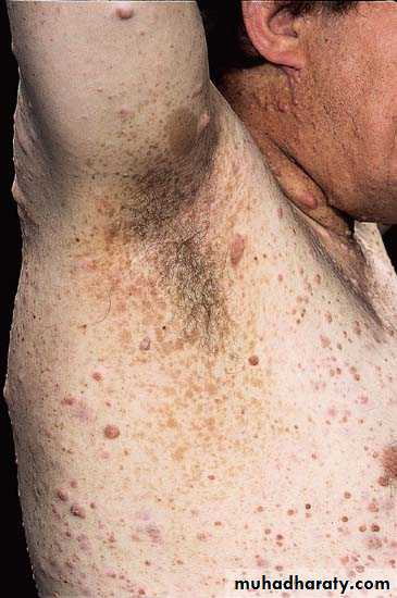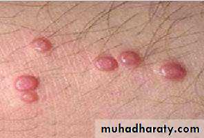 4- Nodule : A larger & deeper lesion than a papule, e.g., erythema nodosum, neurofibromatosis.