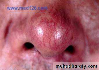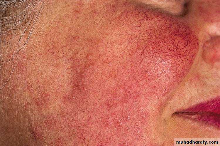 11- Telangectasia : Permanent visible dilation of superficial blood vessels in the skin as in rosacea