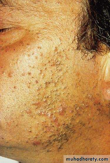 12- Comedo: A plug of keratin & sebum wedged in a dilated pilo-sebaceous follicle, there are 2 types; open (black heads) & closed (white heads), as in acne vulgaris.