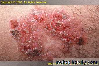 These evolve from primary lesions during the natural progress of the disease, or may be created by events such as scratching or infection.They include: