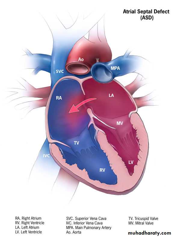 It is defined as an opening in the atrial septum that enables mixing of blood from the systemic and pulmonary venous circulations.Pathophysiology