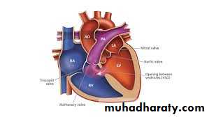 left-to-right shunting of blood across the defect and a marked increase in pulmonary blood flow occurs.Eisenmenger’s complex develops when the pulmonary vascular resistance becomes highly elevated leading to reversal of shunting ( right to left )