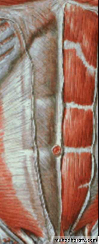 Strong tendenous raphe in the middle line of ant abd wall between 2 recti