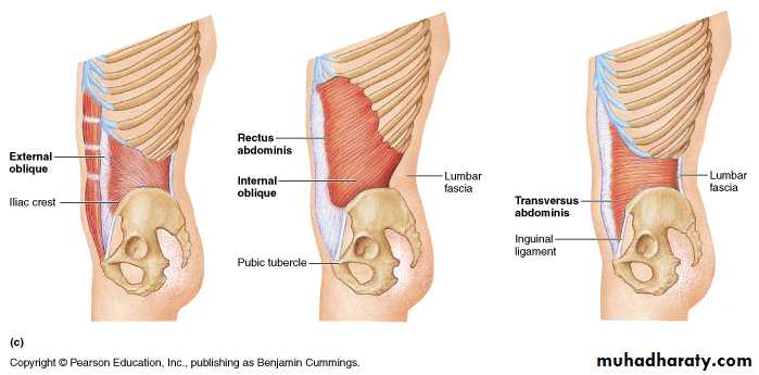 • Anterior and lateral – oblique muscles and m. rectus abdominis