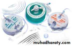 e.g simple tube drain( for post operative ) , foleys catheter ( for urine ) , T tube ( for bile ), NG tube ( for stomach decompression )