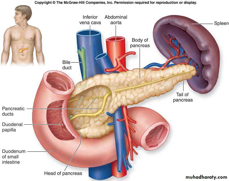 Parts; head ,neck, body and tail of pancrease