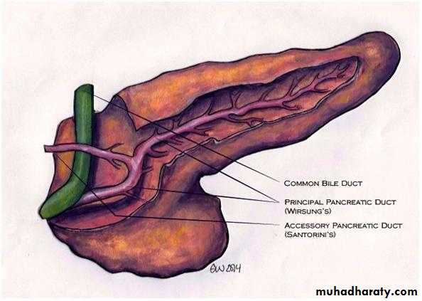 2 ducts1- main pancreatic duct (wirsung duct)