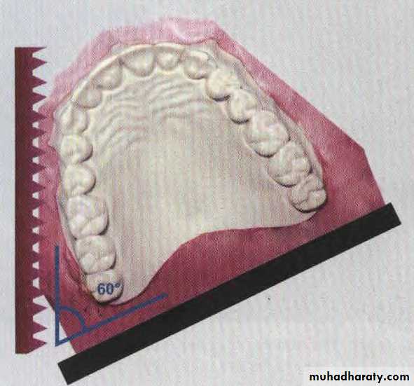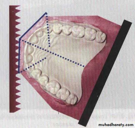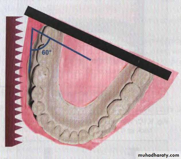 Make buccal cuts. at the edge of the vestibule 60° to back of the model