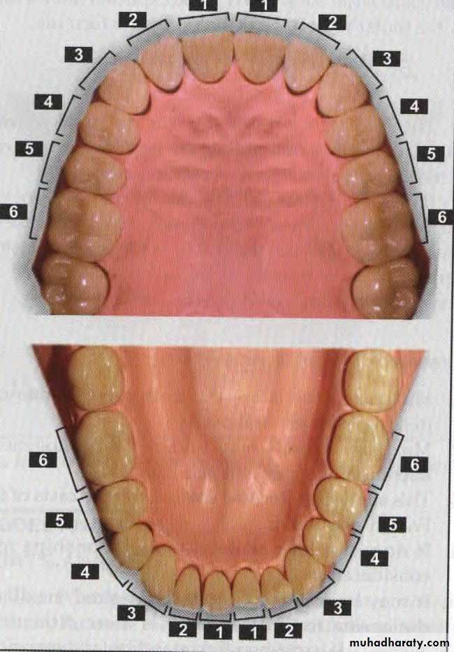 3. The anterior segments extend from a point on the cast between the central incisors to the mesial contact points of the canines.
