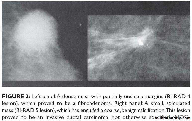 Breast cancer tend to be more radio dense than the normal tissueCriteria that increase chance of cancer in patient without palpable mass appear in the mammography