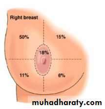 it’s the site where the commonest of ca. breast occur and a dens of brest tissue found