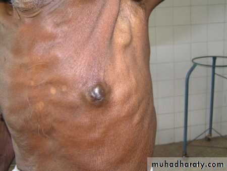 a-large tumour in relation to breast sizeb-center tumour beneath or involve nipple