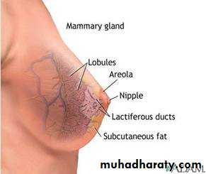 The breast is composed of 15 to 20 lobes whichare each composed of several lobulesThe lobule is the basic structural unit of the mammary gland ,the NO. and the SIZE of the lobules vary In enormously. they are most numerous in a young women ( 10 to 100 lobules) empty via ductules into lactiferous duct of which there are (15 to 20 ) at the end of the duct small dilatation called lacterfarous sinus.