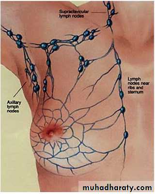 Lymph drain 85% to the axillary L.N and 15% to the internal mammary L.Narrange in the fallowing group