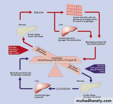 • Insulin being an anabolic hormone stimulates protein & fatty acids synthesis.• Insulin decreases blood sugar
