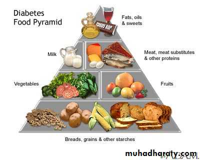 Distribute carbohydrate load evenly during the day preferably 3 meals & 2 snacks with avoidance of simple sugars.