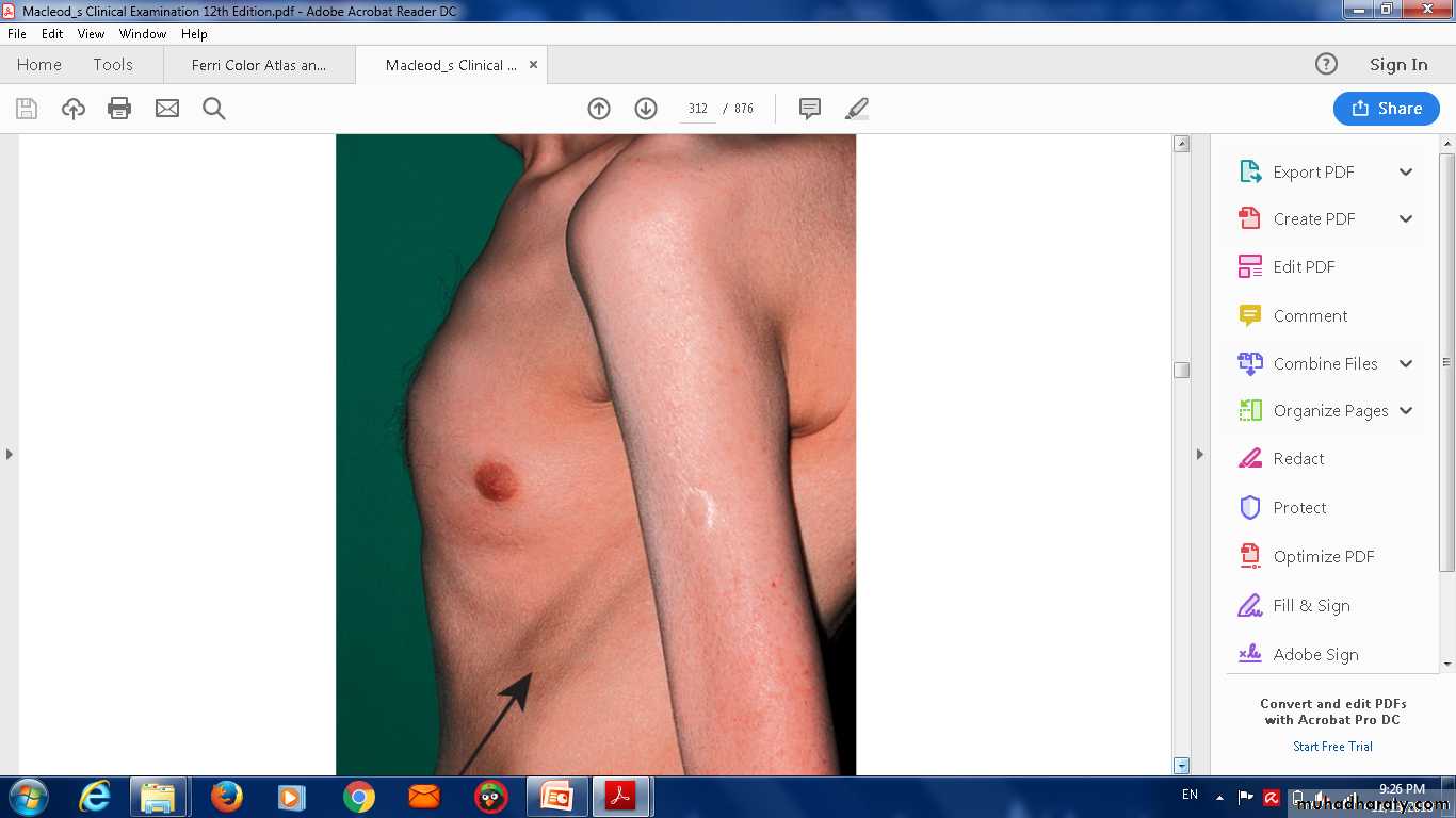 increases the dead space volume and wasted ventilation.3-Flattening of the diaphragmatic muscles and an increasingly horizontal alignment of the intercostal muscles.