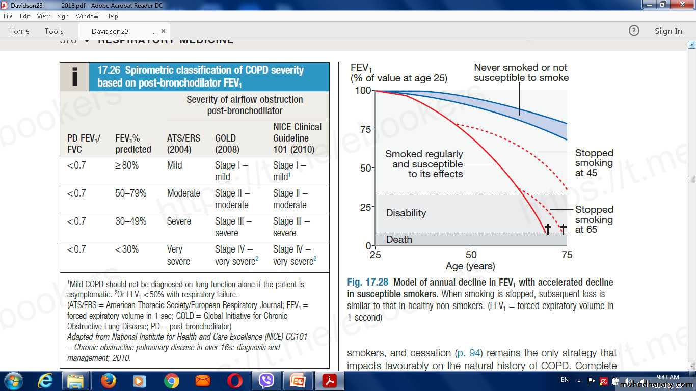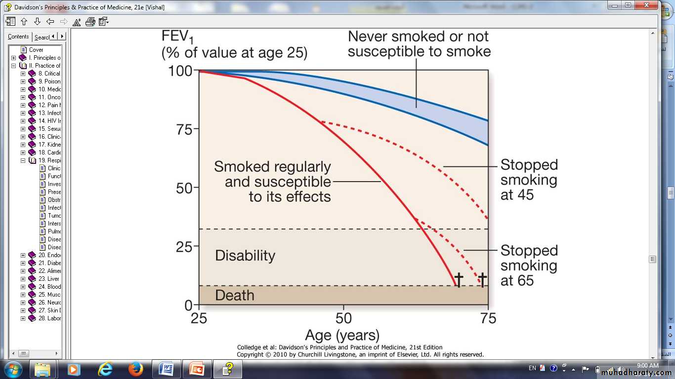 It is unusual to develop COPD with less than 10 pack years (1 pack year = 20 cigarettes/day/year)about 20% of smoker devlope this condition,Pathophysiology