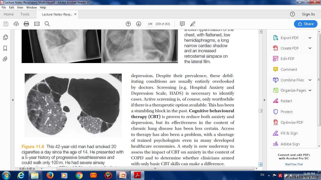 4-The work of breathing is therefore markedly increased, first on exercise but, as the disease advances, at rest too.