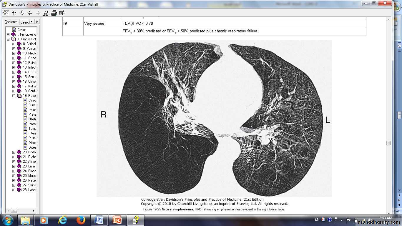 Gross emphysema. HRCT showing emphysema most evident in the right lower lobe.
