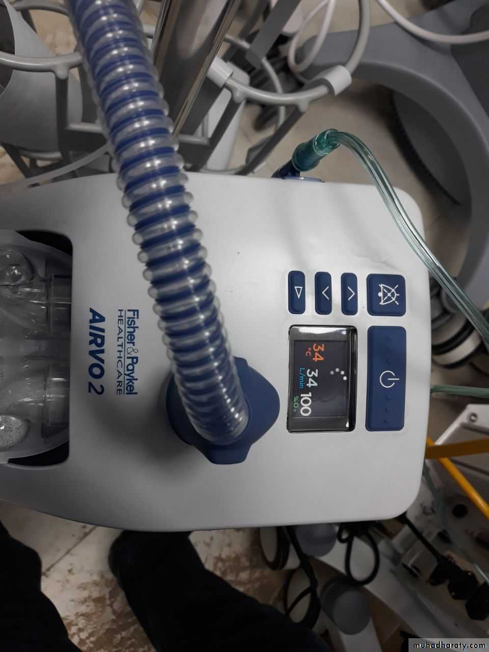 If, despite the above measures, the patient remains tachypnoeic and acidotic (H+ ≥ 45/pH < 7.35), then NIV should be commenced .