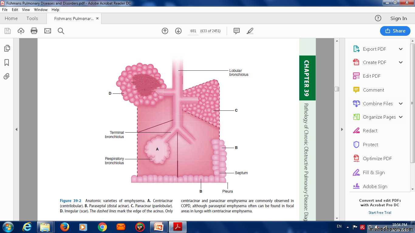 Abnormal permanent enlargement of the air spaces distal to the terminal bronchioles, accompanied by destruction of their walls and without obvious fibrosis .Small airways disease