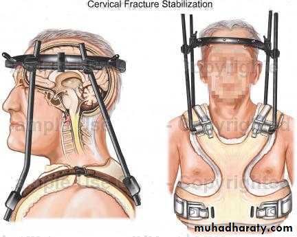 Type III # If undisplaced need halo-vest .Displaced # need reduction by traction then held by halo-vest immobilization.