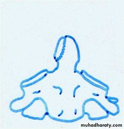 Type I-An avulsion # of the tip of the odontoid process due to traction by the alar ligaments, the # is stable and unites without difficulty.Type II-A # at the junction of the odontoid process and the body of the axis, this is the most common &the most dangerous type, the # is unstable and prone to non-union.